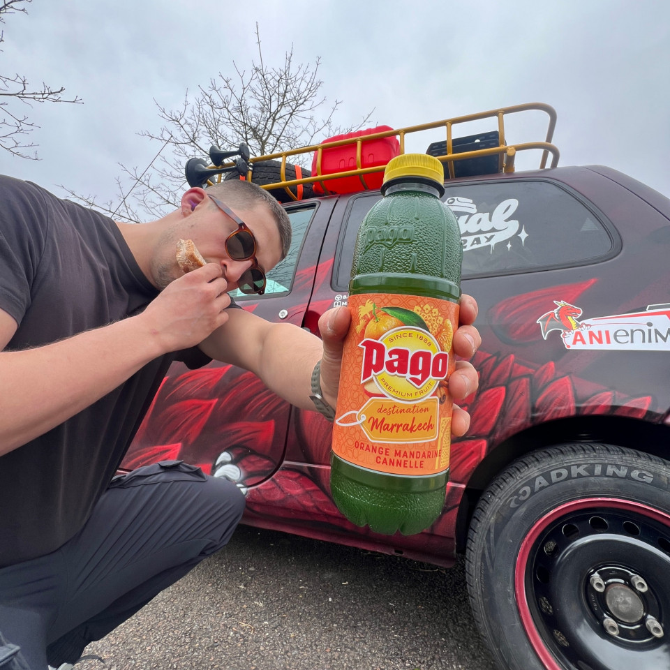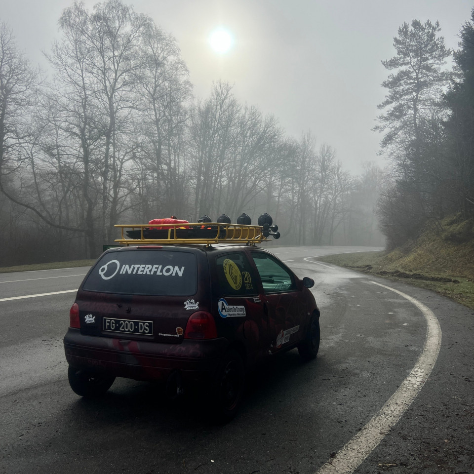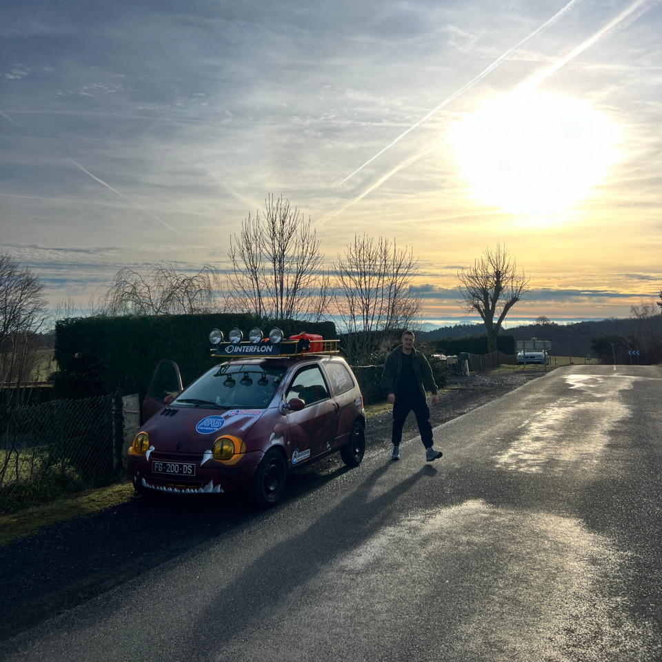 ­JOUR 2­Où sommes-nous ?­Bostens, juste au-dessus de Mont-de-Marsan !Le Sud nous tend les bras, et on commence à sentir l'air des Pyrénées (ou presque).­Au menu du jour...­­La galère­Le capteur de frein à main a pris sa retraite à Clermont-FerrandIl a décidé de ne pas poursuivre l'aventure avec nous. Par contre, son voyant lumineux, lui, s'est confortablement installé sur notre tableau de bord. Ambiance tamisée garantie !­­La rencontre­L'oncle et la tante de Baptiste !Quitte à avaler autant de kilomètres, autant en profiter pour voir les gens qu'on aime ! Accueil au top, repas réconfortant, et surtout : des histoires qui valent le détour.­­La victoire­Le soleil, la route et les villages de FranceIl fait un temps magnifique, la voiture roule comme une horloge (voyant lumineux mis à part), et traverser tous ces petits villages français, c'est juste du pur bonheur. La route est longue, mais qu'est-ce qu'elle est belle !­La citationde deux pâtés­­« Fils de p*te ! » — Un citadin mécontent de la puissance de notre avertisseur sonore.(On a testé le klaxon acheté grâce à vos dons. Efficacité confirmée.)­Et pour la suite...Demain, seulement deux petites heures de route ! Une belle grasse matinée nous attend. On a bien roulé, place au repos avant le grand départ vers le Maroc. La frontière approche...­