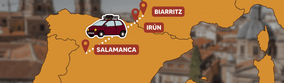 ­JOUR 4­Où sommes-nous ?­Entre le départ officiel, à Irun et Salamanque. Les Twingos se suivent, se doublent et se redoublent pour arriver au final au même endroit au cœur de l’Espagne.­Au menu du jour...­­La galère­Le vent… malgré toute notre préparation, la touintouin est fatiguée et la moindre perturbation se fait ressentir.En Espagne, les routes montagneuses nous ont fait cumuler pentes ardues et vent, un défi pour la Twingo qui a perdu quelques places au classement (et qui en a regagnées pendant les pauses pipi des autres équipages).­­La rencontre­A l’origine on voulait parler de l'équipage du Twank mais au final Jean Lassalle a surpassé tout le monde avec son discours digne de sa réputation.­­La victoire­Hier soir avait lieu la grande soirée de rencontre entre toutes les Twingos à Biarritz ! Nous avons enfin eu la chance de rencontrer les membres des équipages que nous avons le plus suivi sur les réseaux et qui sont exactement comme on les imaginait : sympas, souriants, et généreux.Merci à eux !­La citationdu troisième pâté­­"Il faudrait demander à l’organisation de vous mettre des chamelles à disposition, comme ça si la voiture ne démarre plus, la chamelle, elle, démarrera toujours"— un Jean Lassalle fidèle à lui même lors du discours d’ouverture­Et pour la suite...L'arrivée est prévue ce soir dans un hôtel de Salamanque, où nous allons retrouver toutes les Twingos avec qui nous avons fait le trajet.­