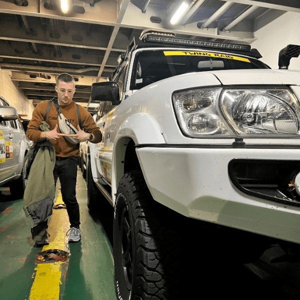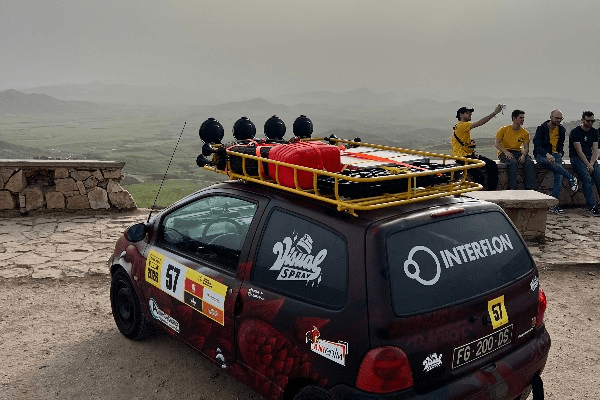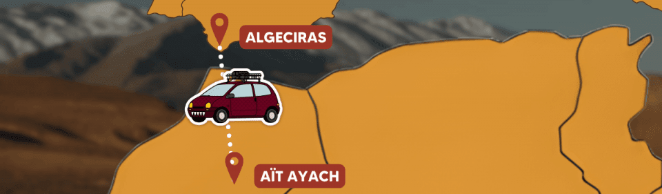­JOUR 6­Où sommes-nous ?­Au Maroc enfin !Surprenamment les routes sont bien plus belles qu’en Espagne (pour le moment).La circulation y est par contre vachement plus bancale...Ici, le klaxon sert à dire merci, au revoir, pardon, je passe, comment vont tes enfants ?, bonne nuit enfin bref tout et n'importe quoi.Nous sommes censés arriver dans l’Atlas ce soir, où la nuit prévoit d'être glaciale.­Au menu du jour...­­La galère­Réveil à 4h ? Check Arrivée à l'heure au ferry ? Check Signature de la carte grise ? Check Signature du passeport ? Check euh en fait non.Les douaniers n’ont pas vérifié la date et ont tamponné les passeports avec la date du lendemain… nous sommes donc allés les refaire (ainsi qu'un bon quart des participants) juste avant de descendre du bateau. Petite sueur garantie, ça annonce l’ambiance.­­La rencontre­En passant par les villages de l’Atlas, nous avons rencontré beaucoup de passants. Pour autant, les plus impressionnables restent les enfants qui nous saluent quasi systématiquement (quand ils essayent pas de voler nos téléphones).Il faut dire qu'avec sa tête de gentil dragon, notre touintouin a un charme indéniable (en toute objectivité, toute personne pensant le contraire sera bannie).­­La victoire­Le belvédère d’Ito ! Atteindre ce magnifique point de vue est une victoire en soi, car il est perché à 1250 m d’altitude, et que nous sommes partis de 0 ce matin (et pour rappel la touintouin n’a pas grand chose dans le sac).En tout cas, la récompense valait l’effort avec ce panorama donnant sur montagnes et vallées verdoyantes.­La citationde deux pâtés­­“Er Chebbi” — expression à utiliser un peu comme le mot “schtroumpf”Exemple : “ces paysages sont vraiment très er chebbi”­Et pour la suite...Une nuit GLACIALE en prévision. Et demain on entame les hostilités avec des montagnes et enfin du sable ! Le tout en direction des dunes de l’Erg Chebbi (parce que oui c’est ça la vraie définition du mot).UN GRAND MERCI À NOS SPONSORS­
