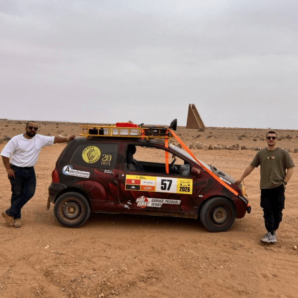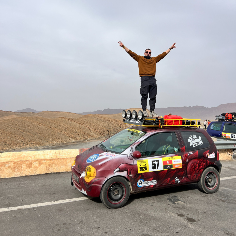 ­JOUR 7­Où sommes-nous ?­Erg Chebbi.Des kilomètres de sable doré, des dunes qui touchent le ciel, et quelque part là-dedans : deux Messins et leur Twingo (elle commence sérieusement à se demander ce qu'elle a fait pour mériter ça). Pas sûrs d'y croire encore tout à fait.­Au menu du jour...­­La galère­Nous découvrons pour la première fois l’art de rouler dans du sable. La touintouin n’est peut être pas l’outil idéal pour franchir tous les obstacles, mais elle nous surprend dans sa robustesse. Nous n’avons pas vraiment eu l’occasion de nous ensabler, mais ça nous pend au nez. Rendez vous demain!BREAKING NEWS au moment de faire cette newsletter: on s'est ensablés.­­La rencontre­On ne retiendra pas une personne en particulier pour la rencontre du jour, mais un moment partagé avec d’autres équipages.C’est un repas dans le désert que nous avons pu vivre ce midi, entouré de l’équipage des Rainettes, les TwingSisters, le Twank, et de TwingAlien, un autre équipage messin. Nous avons pu, grâce à ces derniers, arborer fièrement le drapeau de la Lorraine sur notre touintouin en partageant notre fuseau lorrain.­­La victoire­Première piste terminée. Ça ne paraît peut être pas, mais pour nous c’est clairement la victoire du jour.Ce n’est vraiment pas si facile d’arpenter ces chemins si hostiles pour une Twingo.Il nous reste beaucoup de chemin, mais la touintouin est en bonne voie et puise dans des réserves inattendues.­La citationde deux pâtés­­Un inconnu s'adressant à Baptiste : *dialogue incompréhensible en arabe* puis “tu parles arabe non ?”BAH NON­Et pour la suite...Bah je sais pas, ils n'ont rien écrit. Je pense qu'ils sont encore ensevelis — Hélène la rédactrice.Sinon moi après vous avoir envoyé la newsletter, je me suis prévue une petite soirée vin rouge avec des linguine sauce arrabbiata et une burrata par dessus. Bah ouais, ça vit hein. Et après j'irai lire dans mon canapé avec une petite tisane pour faire glisser tout ça, avant d'aller me coucher tranquillement.UN GRAND MERCI À NOS SPONSORS­